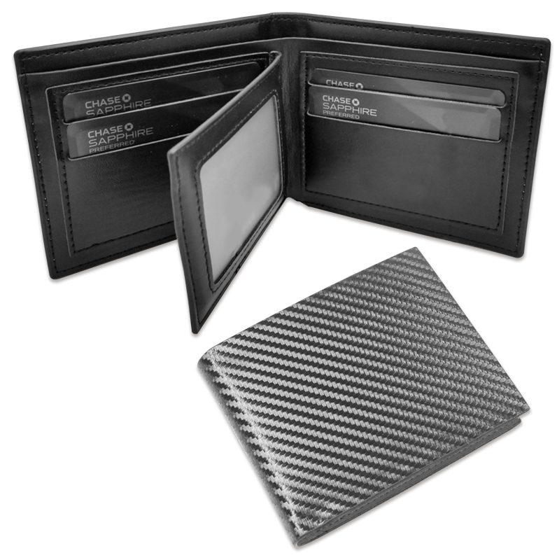 9toa Leather Bifold Wallet RFID blocking Credit Card Holder(Carbon Fiber Black)